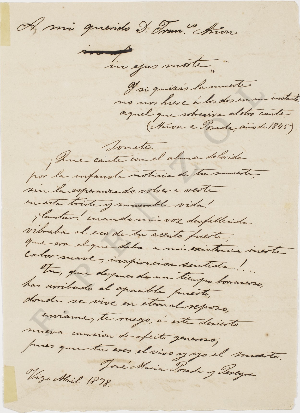 < dc:title > A mi querido Francisco Añón. In ejus morte : [Poesía] </ dc:title >