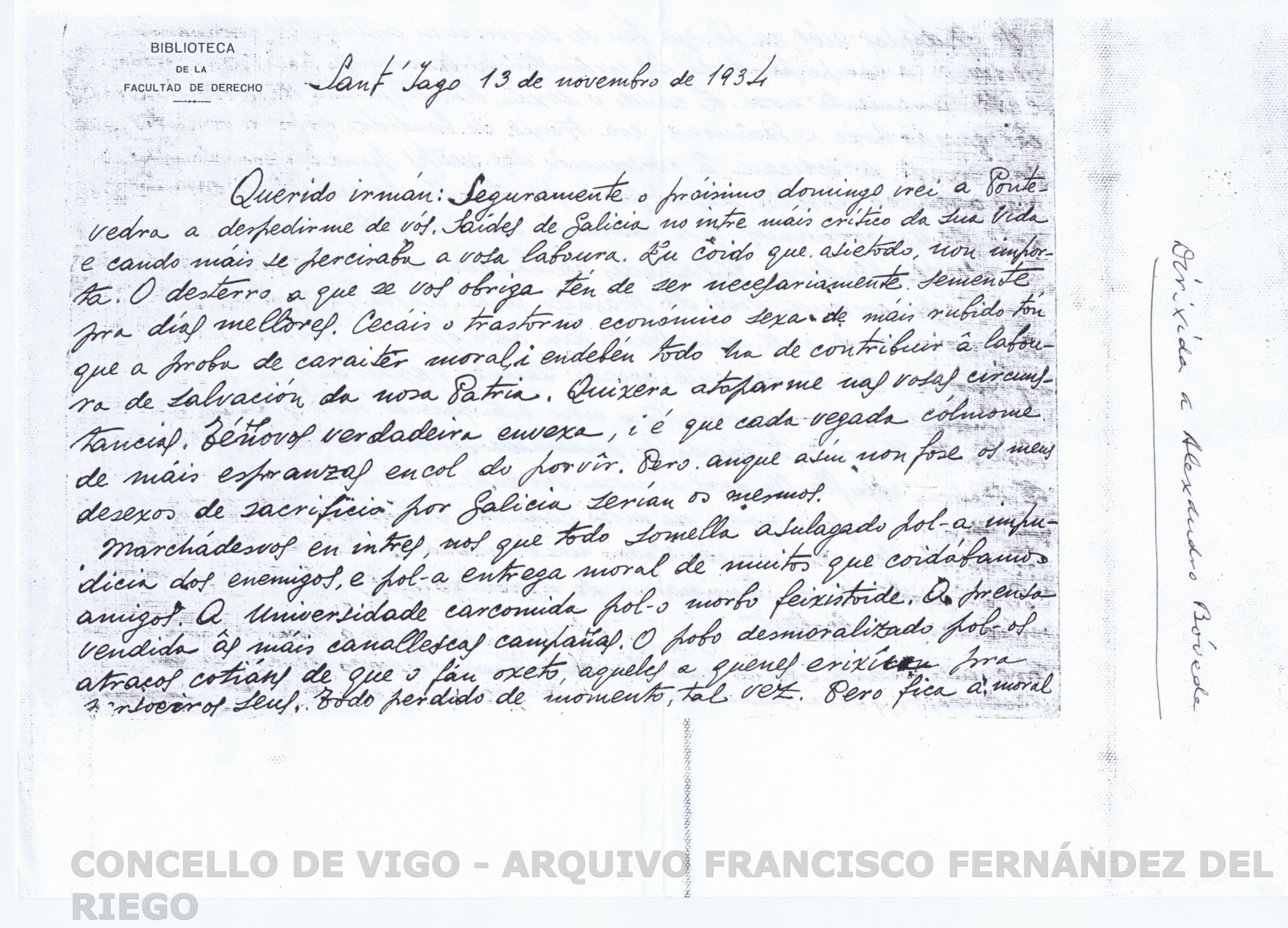 < dc:title > Carta de Francisco Fernández del Riego a Alexandre Bóveda con motivo do desterro deste último. Fotocopia </ dc:title >